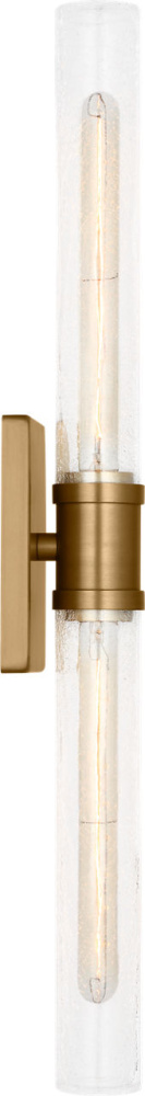 Sleek and modern, this 2-Light bath series pairs a square backplate With tubular clear crackle glass shade. The Keaton two light vanity fixture provides abundant light for your bath vanity, while adding a layer of today's style to your interior design.