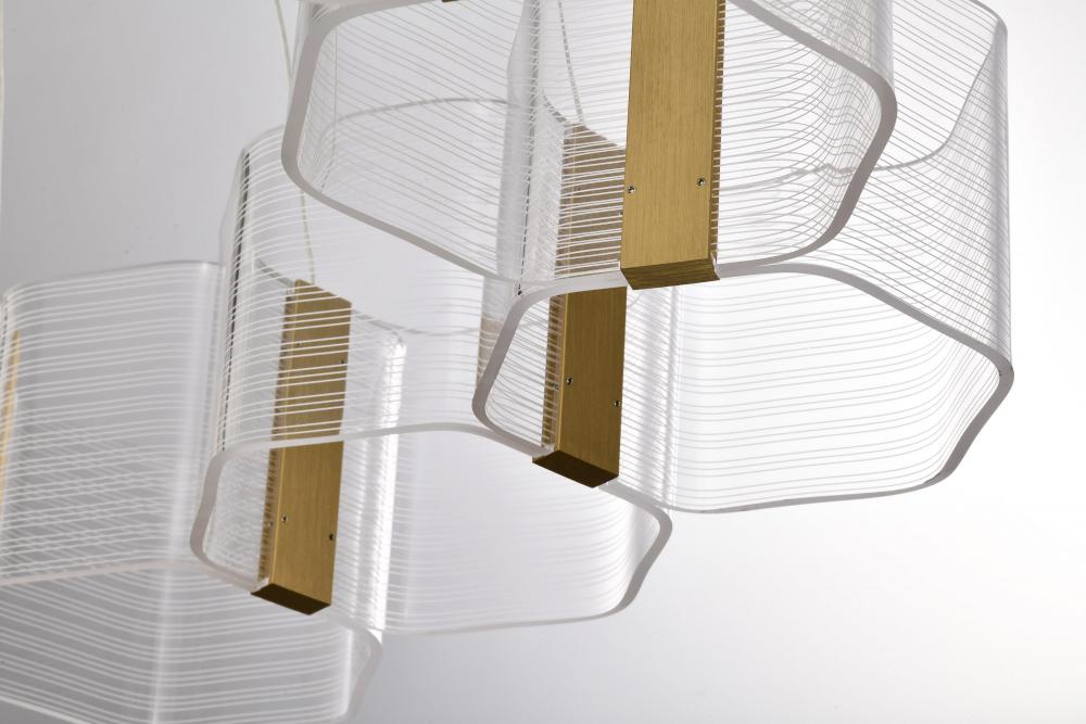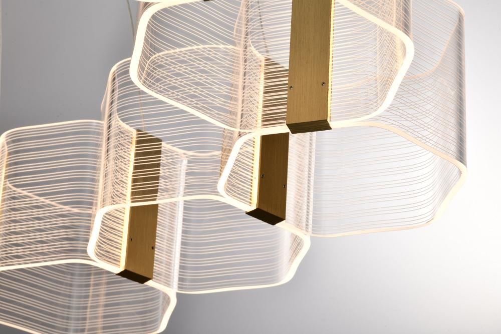 Unveil the art of Modern design with the Kenzo 62-2404 LED chandelier, where bold geometric styling meets sculptural elegance. The parallel lines create a dynamic visual effect, blending symmetry with artistry for a look that captivates. Edge-lit acrylic s