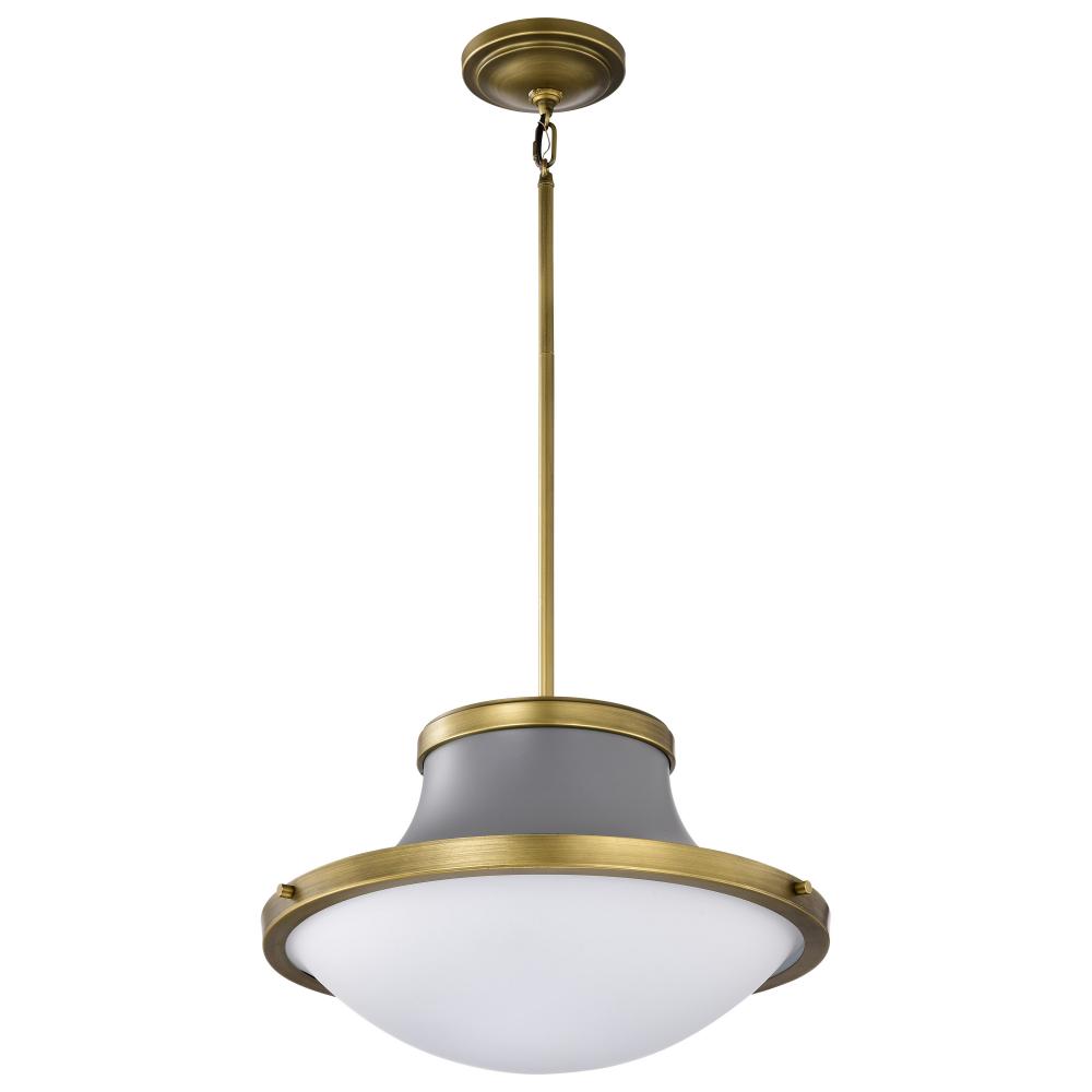 Lafayette 3 Light Pendant; 18 Inches; Gray Finish with Natural Brass Accents and White Opal Glass