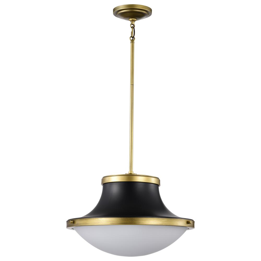 The Lafayette 60-7908 large pendant is a beautiful transitional-style luminaire that features a matte black finish with a white opal glass shade. The design combines elements of both traditional and contemporary styles with clean lines and a simple shape,