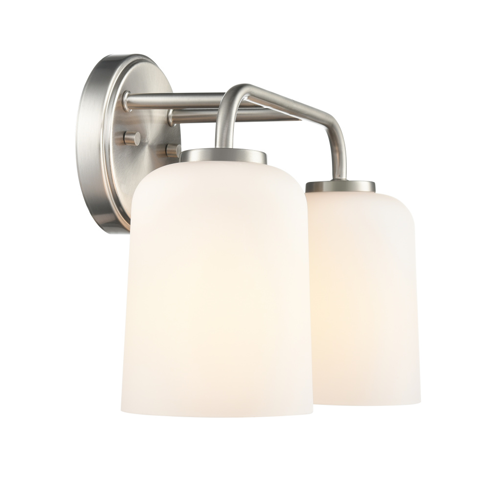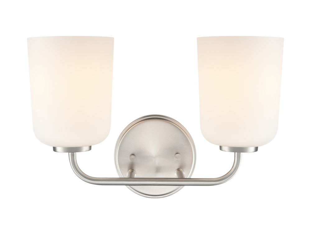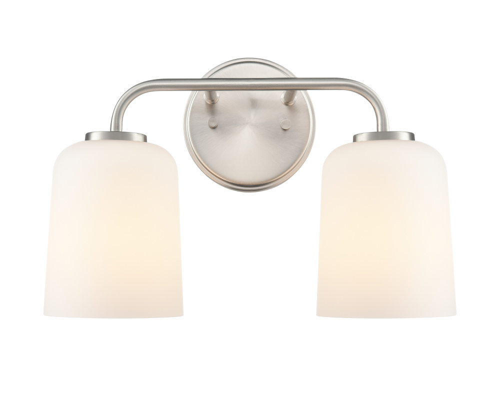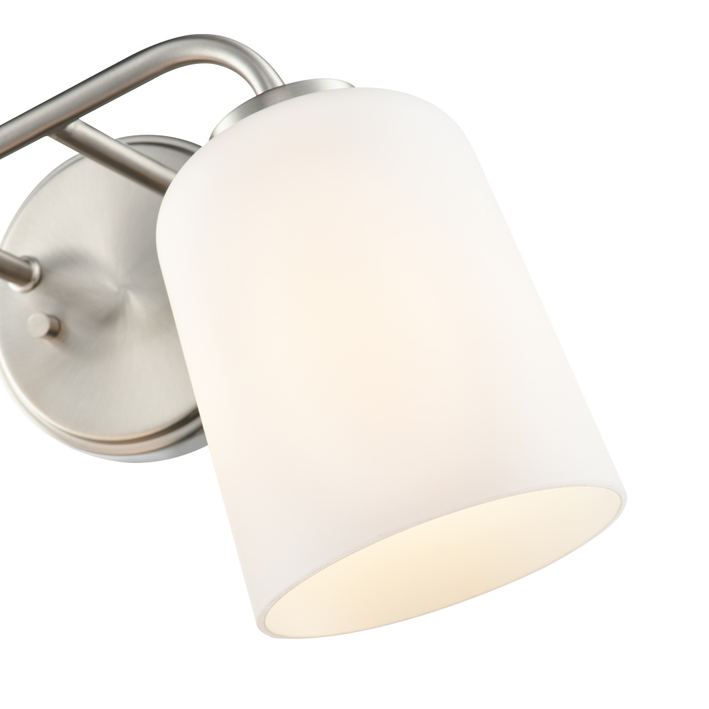 The Laphia Family features sleek lines, a graceful profile, and brilliant white, bell-shaped glass shades creating an ambient glow. The Family is available as sconce, chandelier, pendant, mini-pendant, semi-flush mount, flush mount, and an excellent vanity task light. Perfect for any interior plan from Craftsmen to modern farmhouse, these fixtures are finished in stylish brushed nickel, matte black, or modern gold.