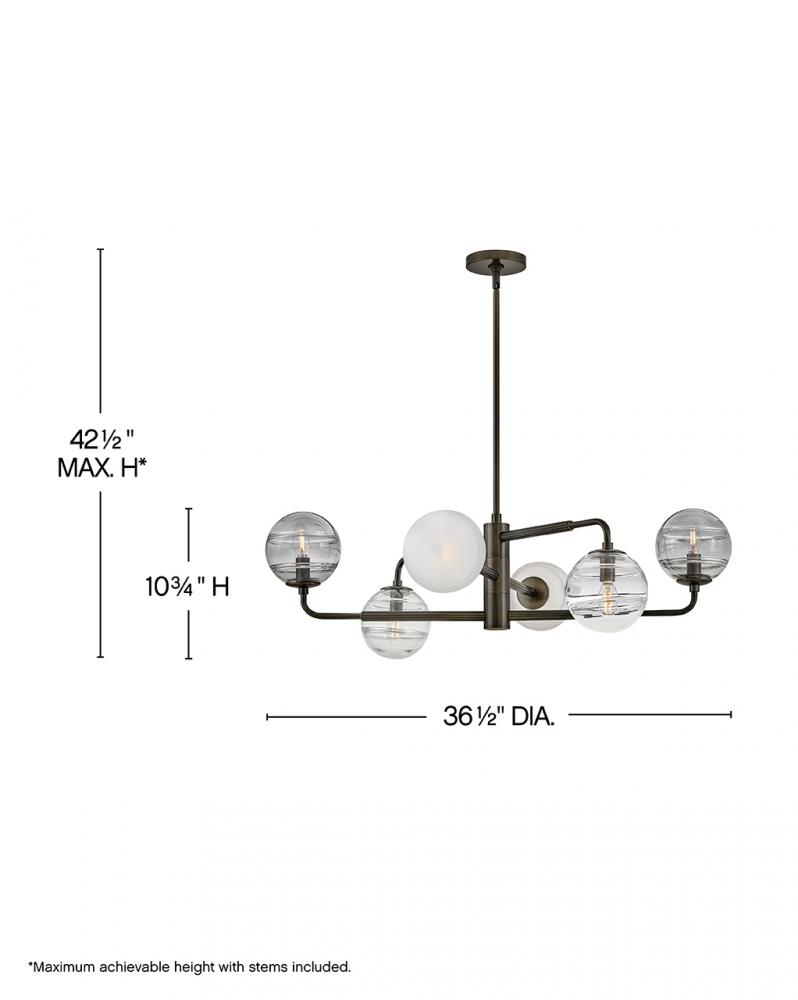 This fixture includes multiple down stems in various lengths to customize the installation height of the fixture, including one 6" stem and two 12" stems
