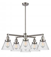 The Large Cone 6 Light Chandelier is part of the Franklin Restoration Collection. Includes 1-6 and 2-12 inch Stems. Additional Stems sold separately.. Solid Brass 90 Degree Hang Straight Swivel for Sloped Ceilings Included