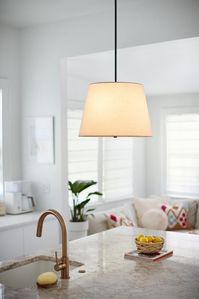 Classic elements get a transitional update with Beale, a dimensional beauty with neatly angular lines. The white linen shade, paired with an acrylic lens, radiates ambient light, aiding Beale in bringing simple, functional style anytime, anywhere.