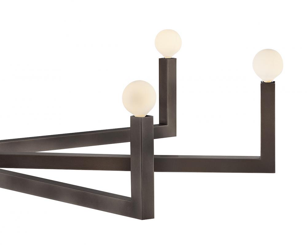 The Ezra family stunningly pairs minimalist elegance with an industrial edge. The strong square arms, sharp angles, and bold silhouette add dimensional appeal, bringing interest to dining rooms, foyers, kitchens, and beyond. Pairing Ezra with a globe-style bulb nails down the transitional, mid-century modern vibe.