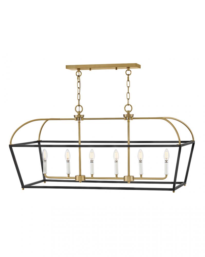 With accent curves in all the right places, Tate’s classic, lantern-style profile makes a glorious statement in any dining room or living space. Bold Black and Lacquered Brass finishes easily complement any décor.