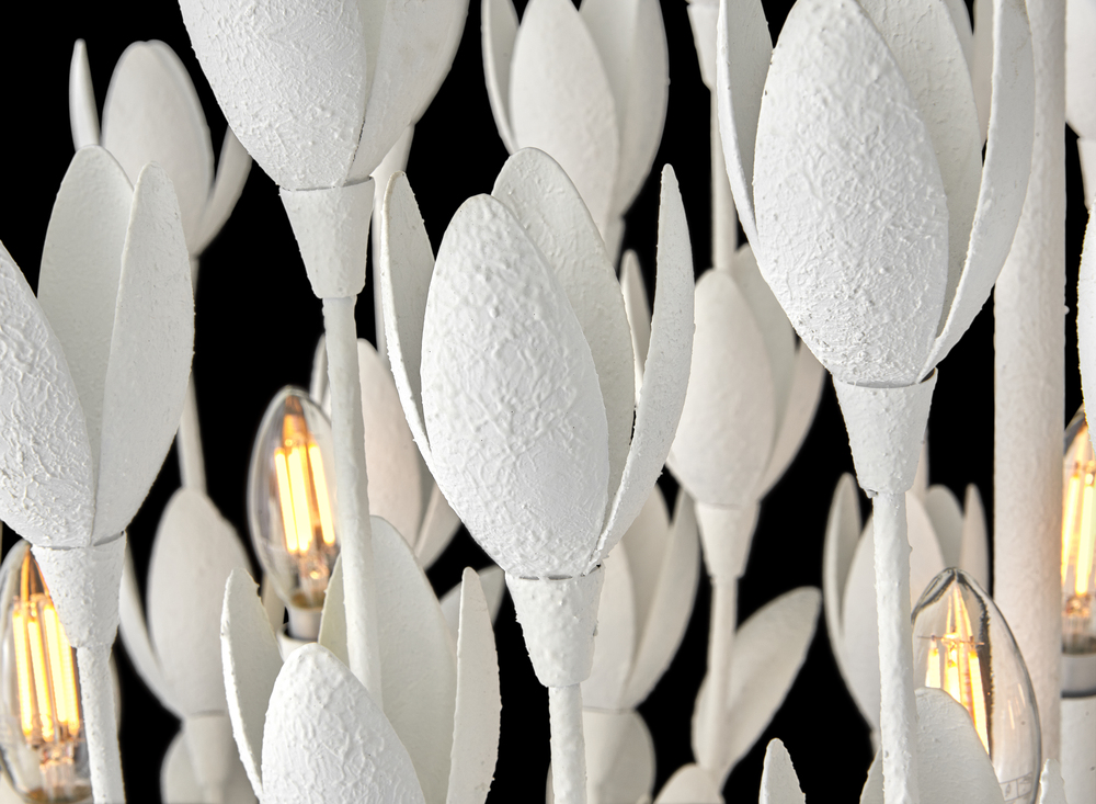 Flora is a work of art inspired by the delicate nature and beauty of florals. Blurring the line between lighting and sculpture, Flora’s handmade, hand-painted blooms mesmerizingly unfold while the bulbs beautifully nestle inside.