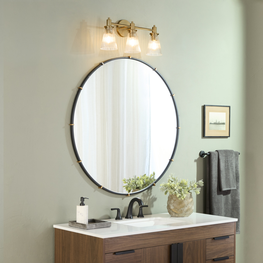Lawton is a playful transitional series featuring pleated conical glass, ramped arms, and contemporary finishing. Early American and European styles inspired the clean bobeche, breaks, and steps in the details. Available in matte black or brushed brass, this vanity offers versatility with 3 or 4 light options. Whether placed in living rooms, kitchens, or entryways, Lawton adds a welcoming touch to any décor.