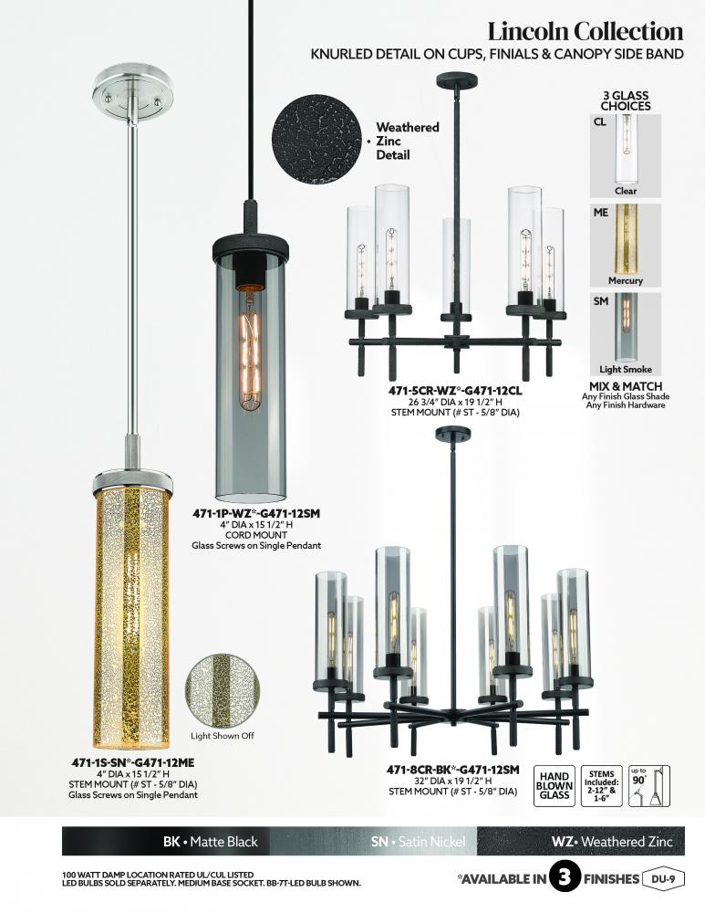 The Lincoln collection makes a statement with bold and striking details. The impressive glass cylinder shade sits atop a refined metal frame that features perfectly placed knurling details. Lincoln is a gorgeous addition to traditional or restoration decor