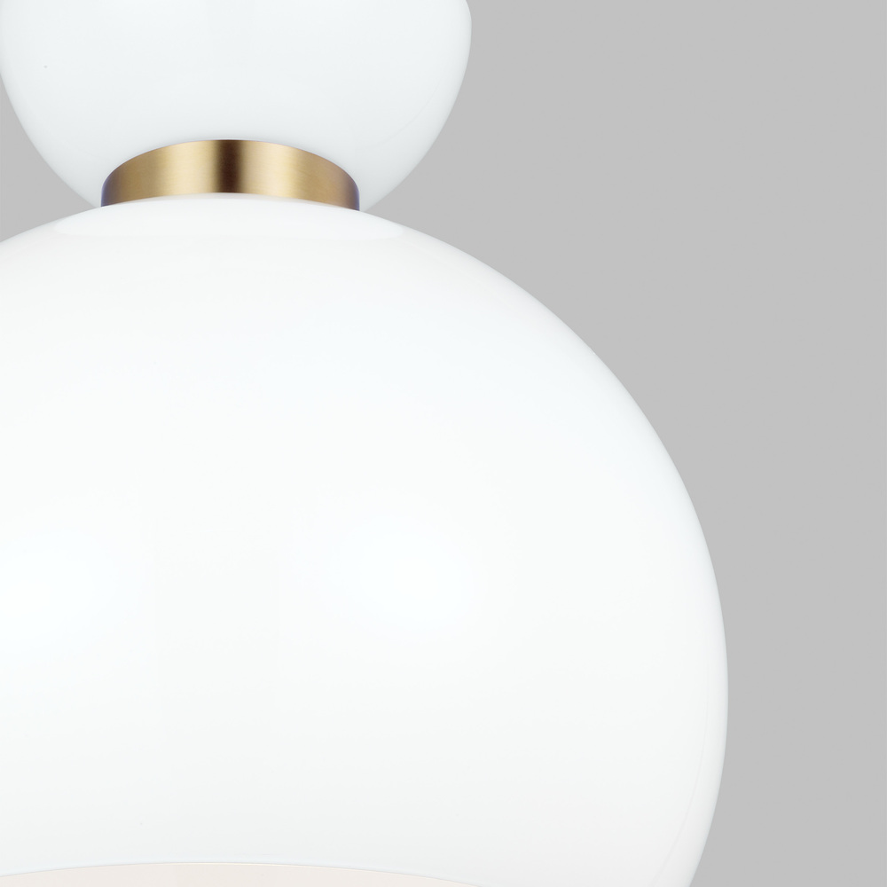 Londyn is inspired by geometric playful midcentury fixtures in metal and glass with exciting profiles and scale play. Two glass spheres with a simple metal cuff and a single bulb—an elegant pendant with graphic interest. This pendant would be great as a single or in multiples over a kitchen island.