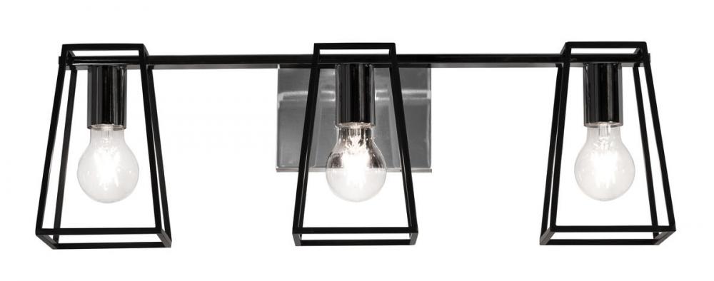 Modern two-tone metal finish vanity. Medium base socket for multiple lamping options. Available in three or four light models. Mount up or down.
