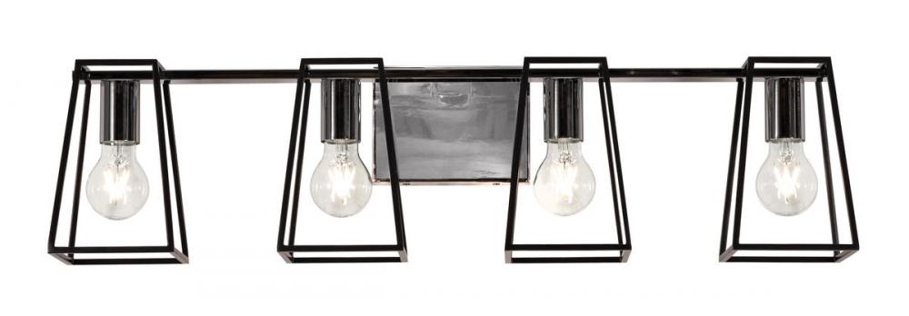 Modern two-tone metal finish vanity. Medium base socket for multiple lamping options. Available in three or four light models. Mount up or down.