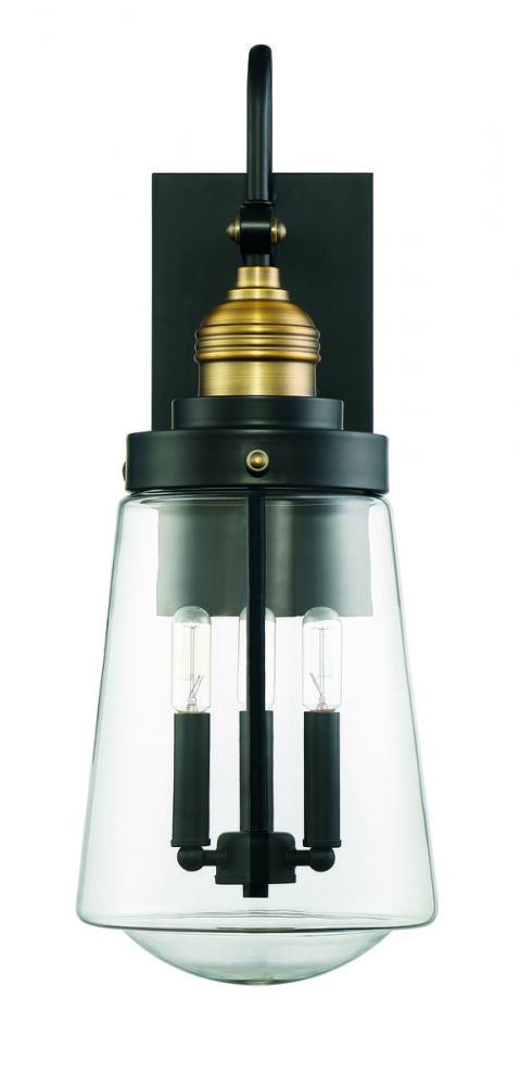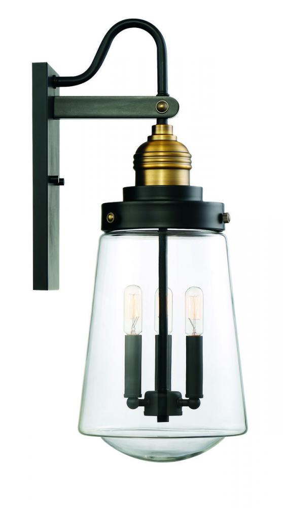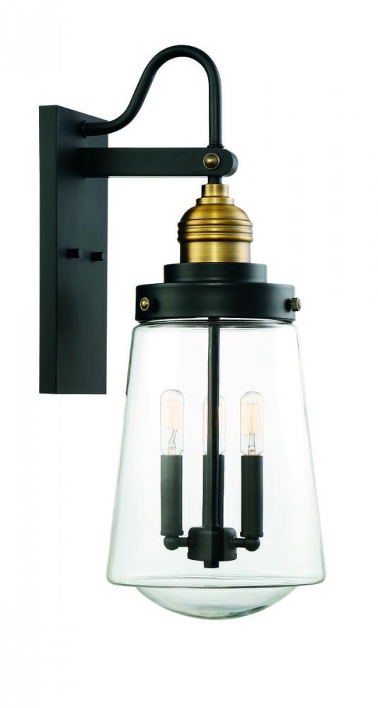 Macauley 3-Light Outdoor Wall Lantern in Vintage Black with Warm Brass