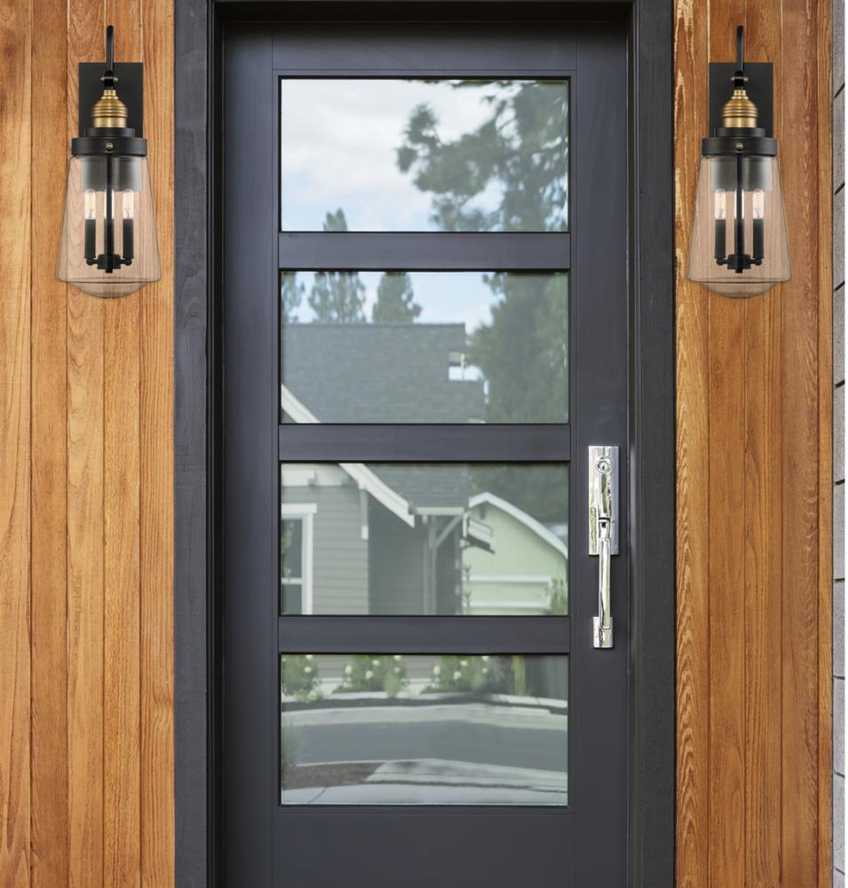 Exterior light fixtures tell people about your design sense before they’ve ever walked into your home. Make sure you’re sending the message you want, with stylish exterior porch lights like the Macauley 3-light wall lantern from Savoy House. Fashionably designed with mixed metals, this trend-conscious outdoor lantern features a vintage black metal body with warm brass accents, and a clear glass shade encasing three decorative bulbs. Designed to complement homes with traditional, transitional, mid-century modern, industrial, rustic and urban farmhouse interiors, this exterior wall sconce is universally pleasing. And since it’s expertly manufactured with quality components, you’ll enjoy greeting visitors with it for many years to come.