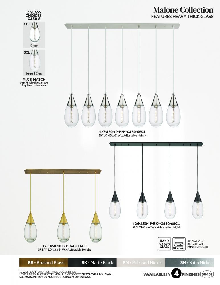 The Malone Pendant is a modern design for the traditional teardrop form. The large fixture presents a beautiful silhouette with a cone inspired metal base opening up to reveal a single bulb encased in classic drop shaped heavy glass.