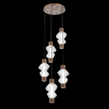 Mandrel Round 5pc Multi-Pendant - Mesa-Metallic Beige Silver-Amber Blown Glass-Cloth Braided Cord-LED - 3000K