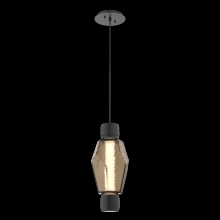 Mandrel Single Pendant - Gem-Metallic Beige Silver-Amber Blown Glass-Cloth Braided Cord-LED - 3000K