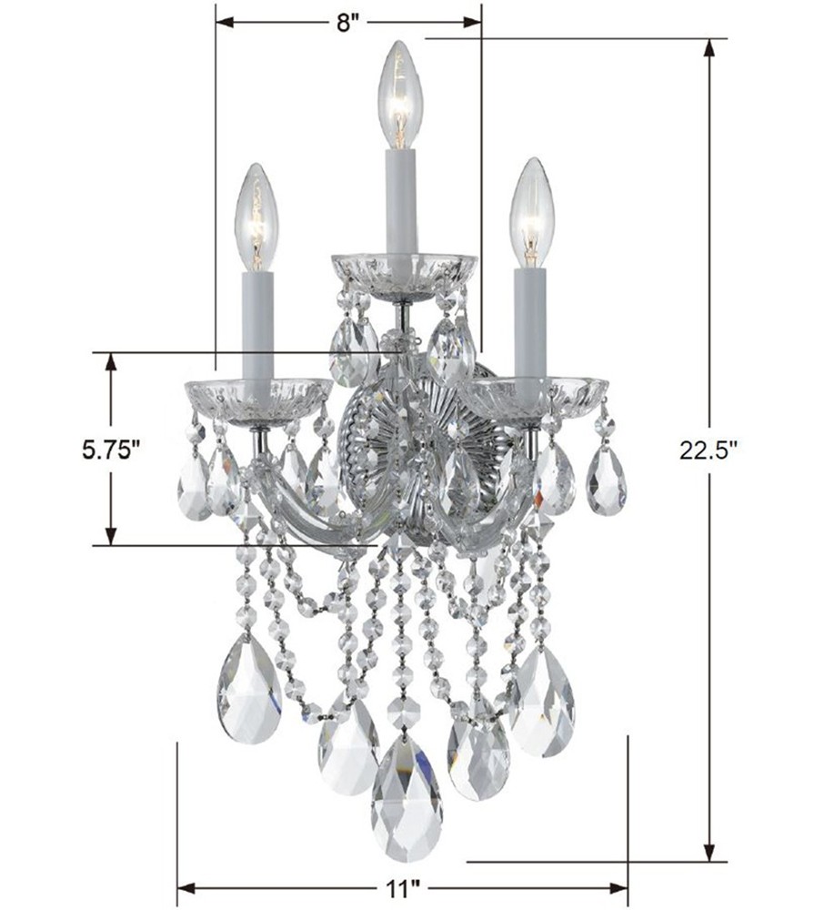 Draped in an abundance of crystal, the Maria Theresa collection is the epitome of high style. The fixture is stunning with glass arm frame decked with strands of faceted cut crystal. The fixture showcases opulence and decadence and is the perfect traditional accent to any space. Whether in a living room, or even closet or hallway, this fixture bring a luxurious addition to any decor.