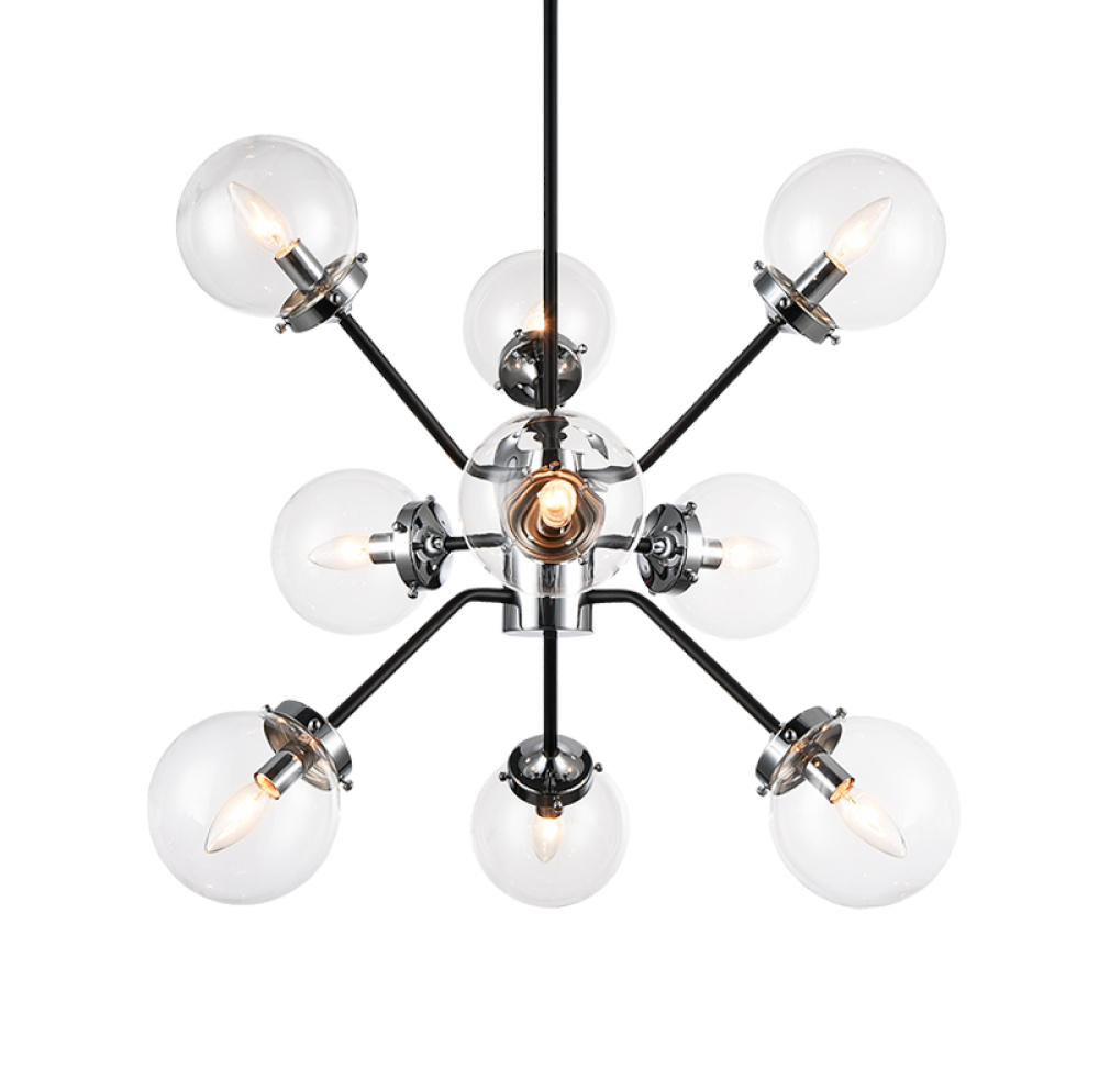 A Mid-Century style that will work with many décors. The series comes in two finishes, Aged Gold Brass and Chrome with Matte Black accents. The finished look can be completely different whether you choose opal or clear glass. The fixtures include a 2-inch rod that you can convert to semi-flush pieces instead of a chandelier. This series can brighten any room with its timeless style and versatile design.
