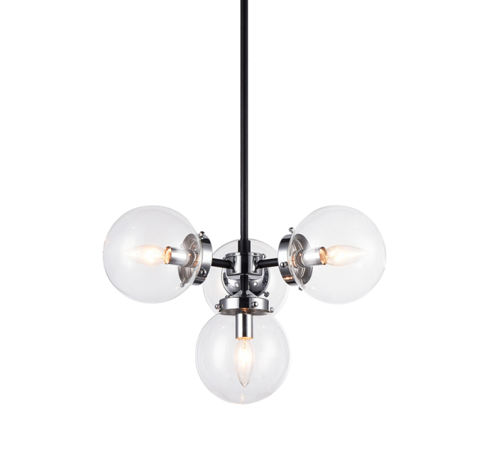 A Mid-Century style that will work with many décors. The series comes in two finishes, Aged Gold Brass and Chrome with Matte Black accents. The finished look can be completely different whether you choose opal or clear glass. The fixtures include a 2-inch rod that you can convert to semi-flush pieces instead of a chandelier. This series can brighten any room with its timeless style and versatile design.