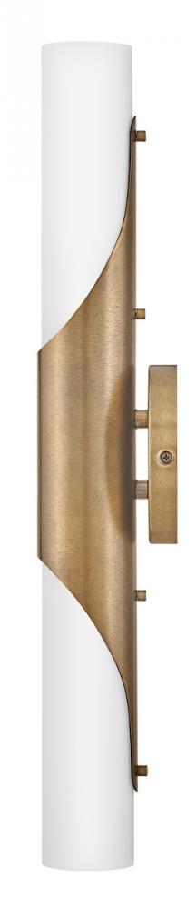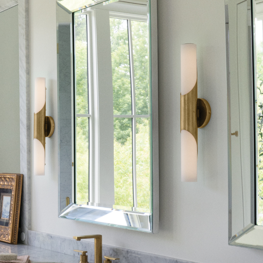 Grace is simply elegant and perfectly named. Featuring a beautifully modern silhouette enhanced by a bias-cut central cuff, this feminine fixture has a timeless aesthetic that complements any décor style. Smooth etched opal glass is paired with a Textured Black Oxide or Textured Heritage Brass finish, providing contrast and subtle detail.