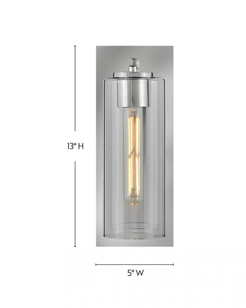 The Lane sconce is a cylindrical statement piece. The oversized clear glass shade delivers a powerful punch while keeping its cool with sleek, streamlined poise. The elongated back plate paired with the three on-trend finish options give off an industrial-chic feel that shines in any space.