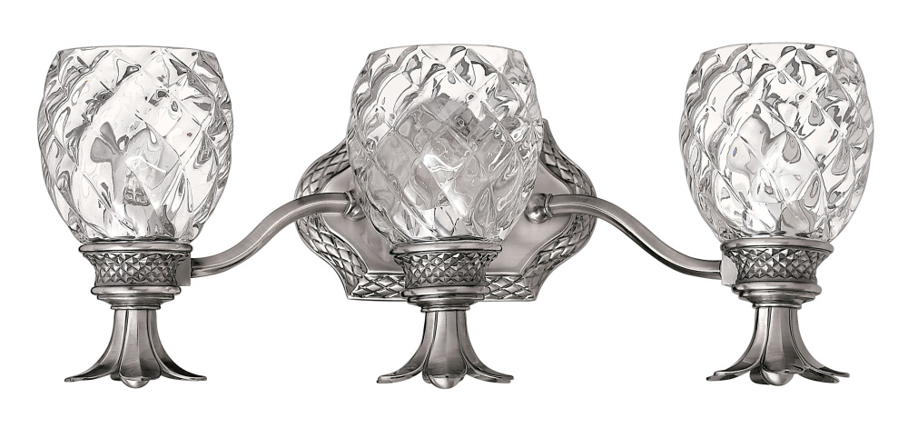 A Hinkley classic, the ornate Plantation collection features exceptional pineapple shaped, clear optic glass that makes a noble statement. The elaborate, decorative cast detailing is accentuated by its lush finish.