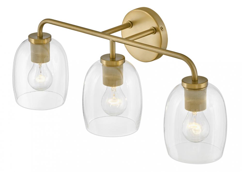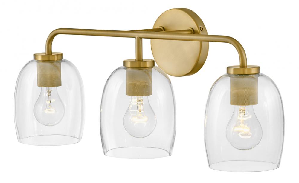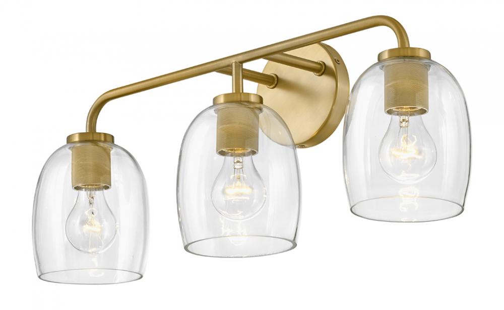 Percy’s transitional style rings loud and clear with clever bell-shaped clear glass designed to highlight its distinctive industrial detailing, all while serving up ample illumination. Easily installed up or down, Percy transforms any bathroom into one of the most stylish spots in the house. A collection of 3 versatile finish options, Antique Nickel, Black and Lacquered Brass, lets you pick the perfect Percy for powder rooms and primary baths alike.