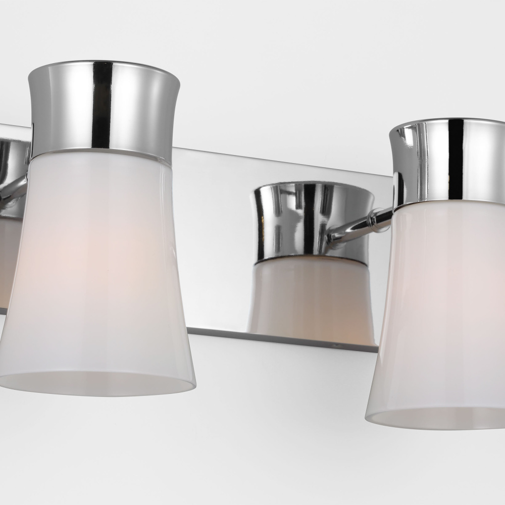 Made to coordinate across a broader range of bath hardware and design styles, this light breathes new life to its traditional shape with milk glass shades and striking, modern finishes