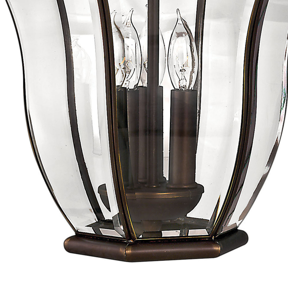 San Clemente’s elegant shape takes center stage with clear bent, beveled and bound glass as the central design element. Its cast aluminum and brass construction complemented by exquisite cast ornamental detailing completes its captivating appeal.