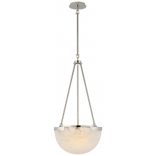 The Melange series by Kelly Wearstler contrasts natural alabaster with metal in rounded forms, blending organic and luxurious elements for a chic modern look. Carved alabaster shades emit a soft glow, while streamlined shapes complement angular or minimalist interiors. Available in bronze, burnished antique brass, or polished nickel, these fixtures include flush mounts, pendants, sconces, and table lamps, each offering unique variations in veining and tone for a collectible appeal.