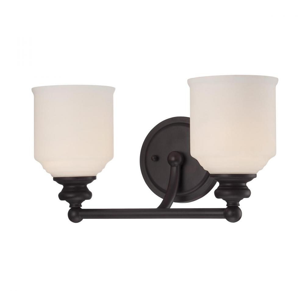 From Savoy House, the Melrose 2-light bath vanity bar stylishly updates classic Americana design for today's interiors. It features modern lines, white opal glass shades and an English bronze finish. It may be mounted as either uplight or downlight. Bath bar lights are a classic choice for illuminating vanity mirrors in bathrooms big and small. The English bronze finish can be paired with bronze hardware or mixed with hardware in other finishes. Bring Melrose into bathrooms of traditional, transitional or classic style to improve the look and the lighting. When you choose a Savoy House lighting fixture, you can be certain you’ve selected a piece that will withstand the test of time.