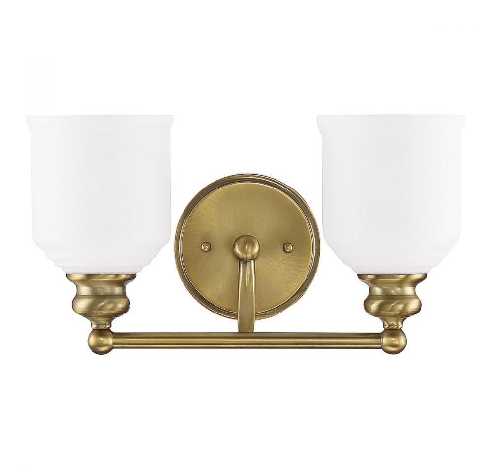 From Savoy House, the Melrose 2-light bath vanity bar stylishly updates classic Americana design for today's interiors. It features modern lines, white opal etched glass shades and a warm brass finish. It may be mounted as either uplight or downlight. Bath bar lights are a classic choice for illuminating vanity mirrors in bathrooms big and small. The warm brass finish can be paired with brass hardware or mixed with hardware in other finishes. Bring Melrose into bathrooms of traditional, transitional or classic style to improve the look and the lighting. When you choose a Savoy House lighting fixture, you can be certain you’ve selected a piece that will withstand the test of time.