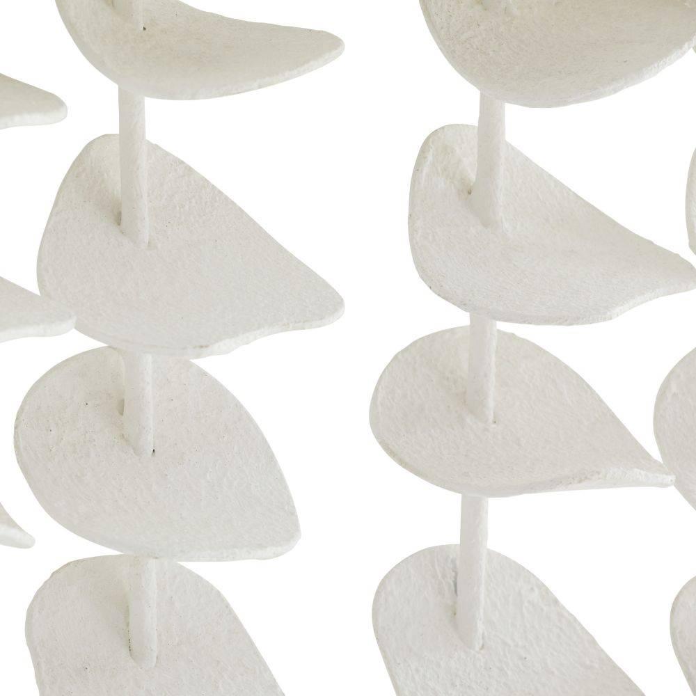 Echoing the design language of our Melt entry table, the Melt wall decor's decorative smoke wood armature supports a cascade of hand-formed petals in white gesso-plated iron, strung in a series of vertical rods. A study in material contrast and diverse movement, this compelling piece suits a wide range of spaces. Finish will vary.