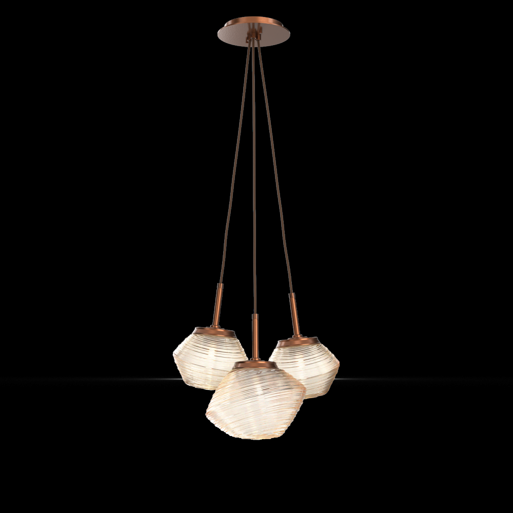 Mesa 3pc Cluster - Burnished Bronze - Burnished Bronze - Amber Blown Glass - Cloth Braided Cord - LED - 2700K