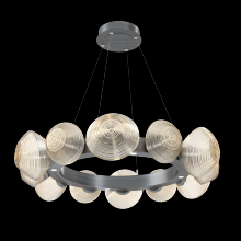 Mesa 36" Radial Ring - Burnished Bronze - Burnished Bronze - Amber Blown Glass - Stainless Cable - LED - 2700K