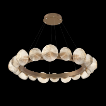 Mesa 48" Radial Ring - Burnished Bronze - Burnished Bronze - Amber Blown Glass - Stainless Cable - LED - 2700K
