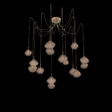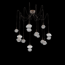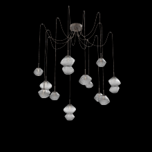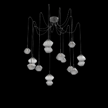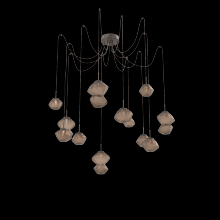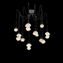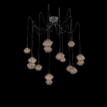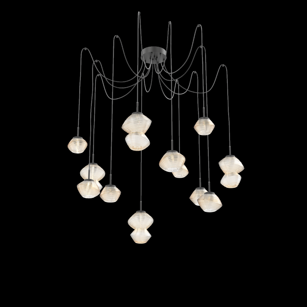 Mesa Round 12pc Swag Multi - Pendant - Matte Black - Amber Blown Glass - Cloth Braided Cord - LED - 3000K