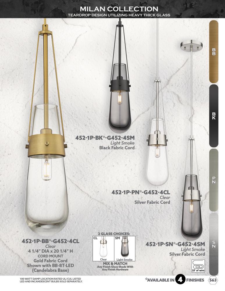 The Milan pendant reinvents the teardrop form with contemporary shapes and modern metal accents. The heavy glass bulb is held in place by a metal band with heavily detailed screws. Suspended from a tapered frame and featuring a single filament bulb, the M
