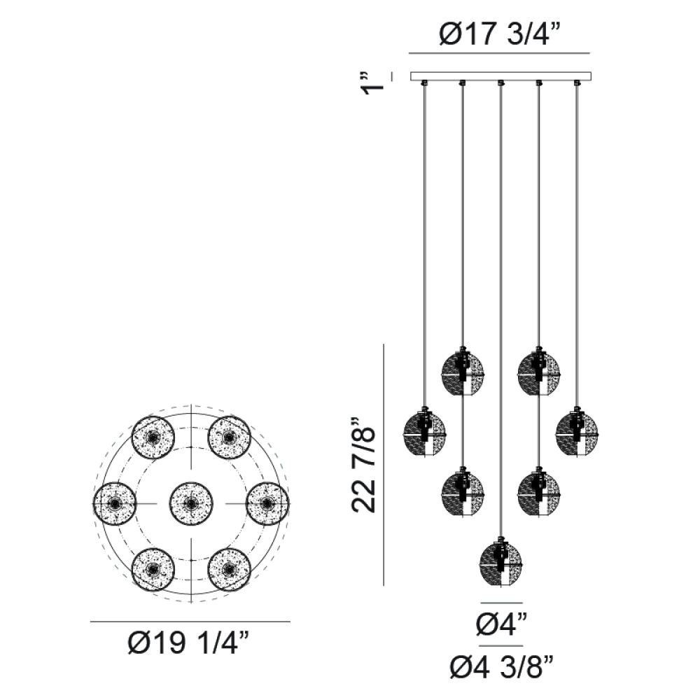7 LT DIA19.2" "MISTY" AGED GOLD G9 5W CHANDELIER