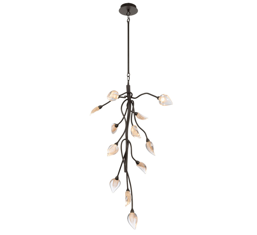 The handmade glass elements bring a distinctive touch of artistry and craftsmanship to the chandelier, elevating its aesthetic charm.
