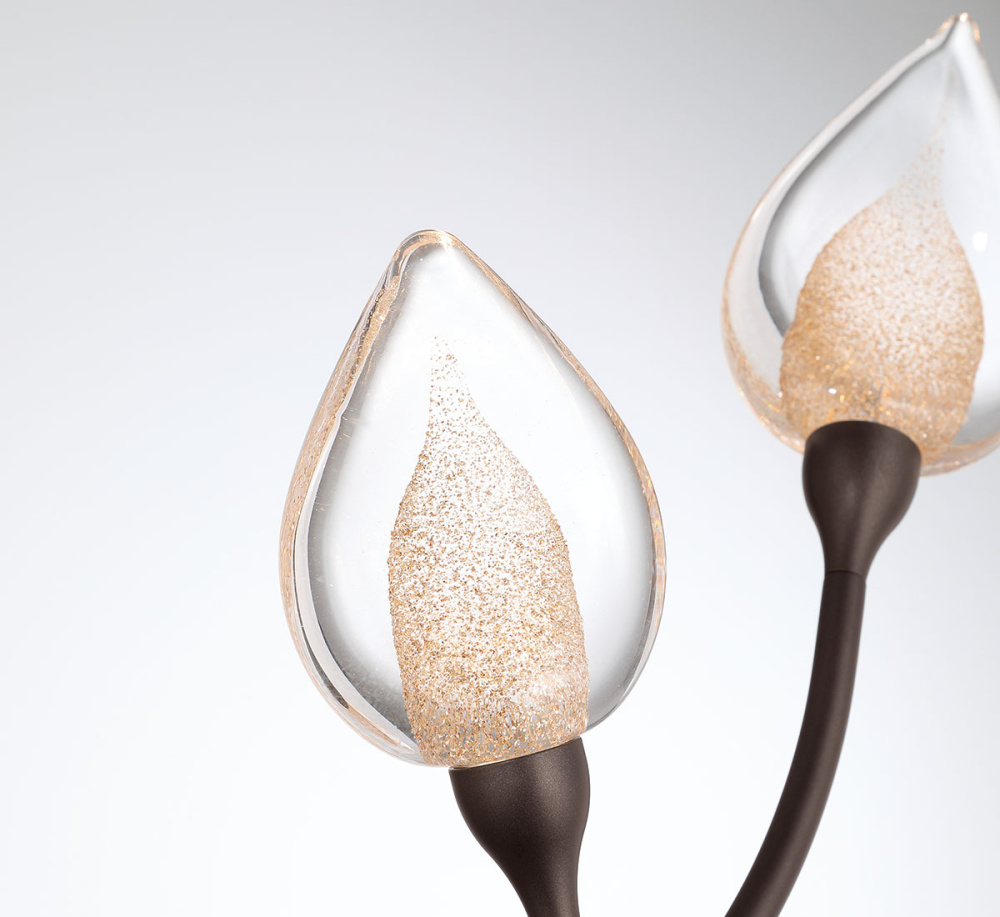 The handmade glass elements bring a distinctive touch of artistry and craftsmanship to the wall mount, elevating its aesthetic charm.