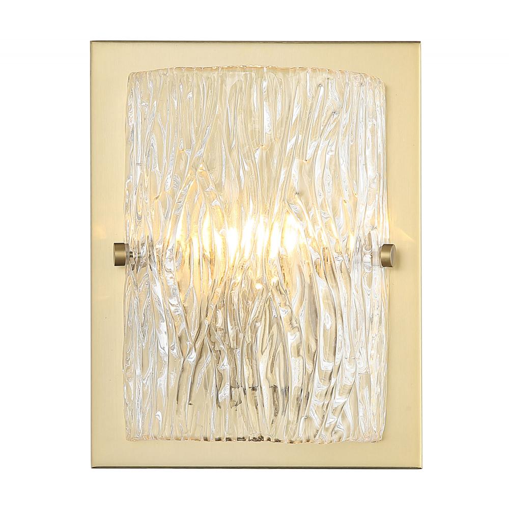 Hand-made Ice Glass with Pattern Stamped on Both Sides. Slightly Oversize Back Plate Creates a Visual Frame. Adjustable Hardware.