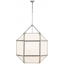 The Morris by Suzanne Kasler brings refined charm to any kitchen or entryway. Featuring clear or white glass panes, the geometric frame in antique zinc, polished nickel, or gilded iron offers both bright and softly diffused illumination.