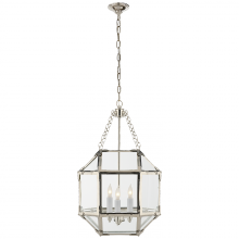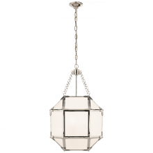The Morris by Suzanne Kasler brings refined charm to any kitchen or entryway. Featuring clear or white glass panes, the geometric frame in antique zinc, polished nickel, or gilded iron offers both bright and softly diffused illumination.