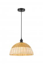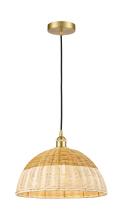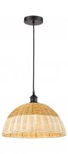 Natural Ballston Dome - 1 Light - 6 inch - Antique Brass - Natural Fiber Basketweave - Cord hung - Mini Pendant