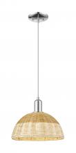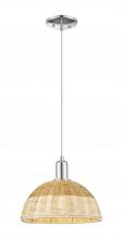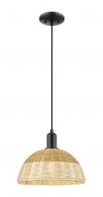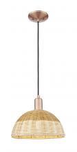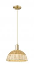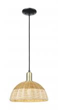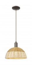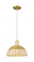 Natural Ballston Dome - 1 Light - 6 inch - Antique Brass - Natural Fiber Basketweave - Cord hung - Mini Pendant