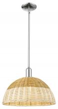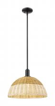 Natural Ballston Dome - 1 Light - 6 inch - Antique Brass - Natural Fiber Basketweave - Mini Pendant