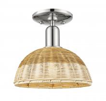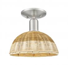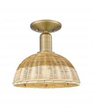 Natural Ballston Dome - 1 Light - 6 inch - Antique Brass - Natural Fiber Basketweave - Semi-Flush Mount