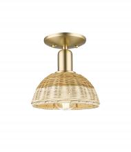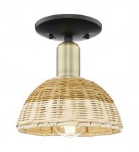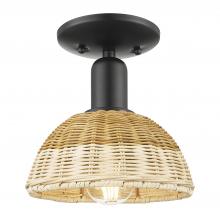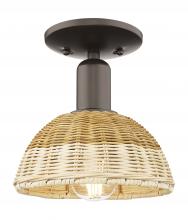 Natural Ballston Dome - 1 Light - 6 inch - Antique Copper - Natural Fiber Basketweave - Semi-Flush Mount
